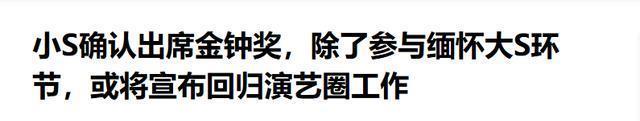 杭州日-08-0619:31小S确认出席金钟奖,除了参与缅怀大S环节,或将宣布回归演艺圈工作